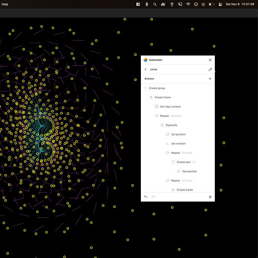 After I announced Tricycle, I had lots of outreach from designers about ideas for automation tools that could help them be more productive. One of them was Joey Banks (one of my favorite Twitter follows) who mentioned “It'd be really interesting to have a way to "record" a collection of actions I'm taking and then repeat that collection of actions at any time and anywhere on the canvas.”